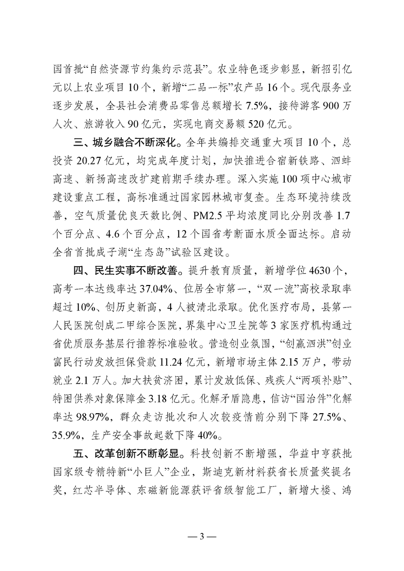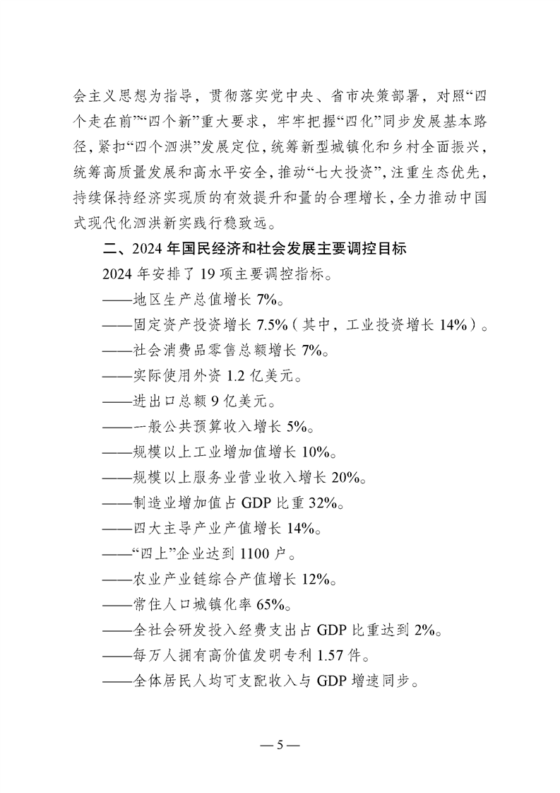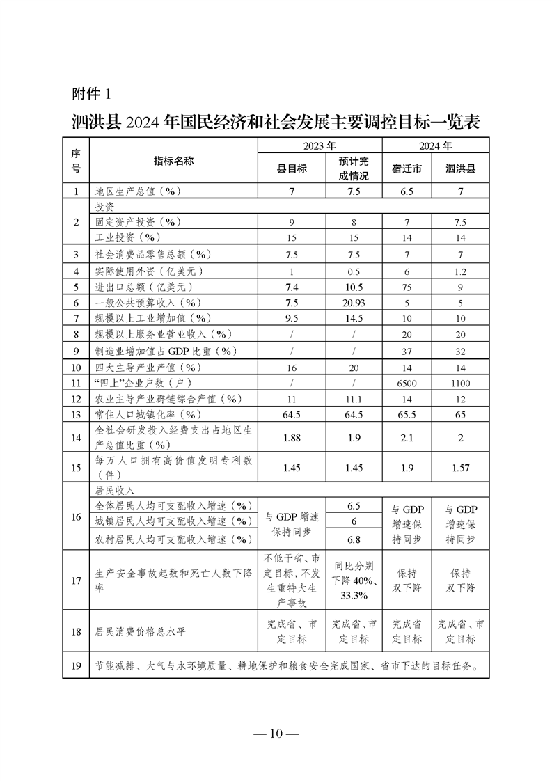 關于泗洪縣2023年國民經濟和社會發展計劃執行情況與2024年國民經濟和社會發展計劃(草案)的報告