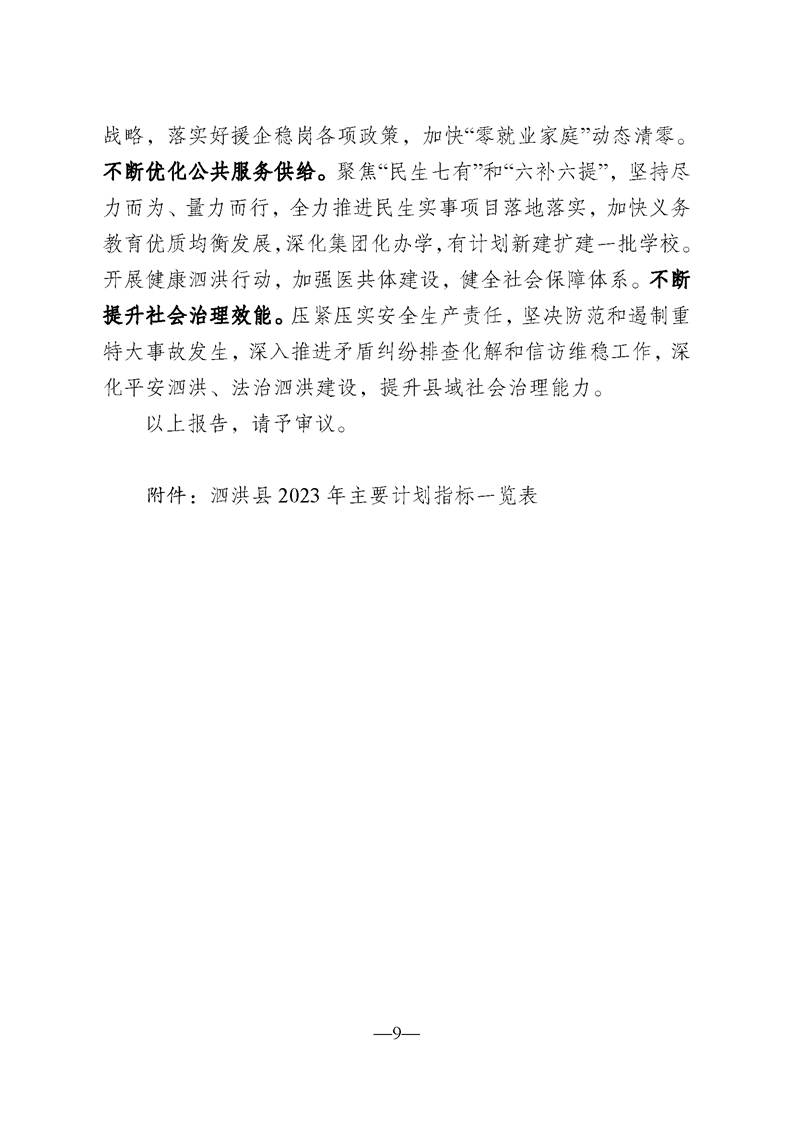 關于泗洪縣2022年國民經濟和社會發展計劃執行情況與2023年國民經濟和社會發展計劃(草案)的報告