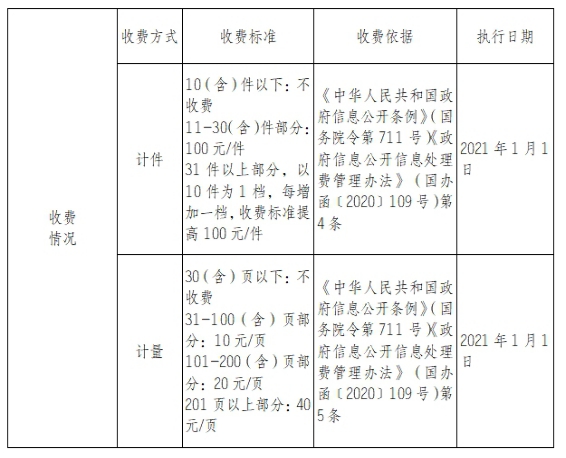 本機(jī)關(guān)依申請(qǐng)?zhí)峁┱畔?,不收取費(fèi)用。但是,申請(qǐng)人申請(qǐng)公開(kāi)政府信息的數(shù)量、頻次明顯超過(guò)合理范圍的,本機(jī)關(guān)按照《國(guó)務(wù)院辦公廳關(guān)于印發(fā)<政府信息公開(kāi)信息處理費(fèi)管理辦法>的通知》(國(guó)辦函〔2020〕109號(hào))的規(guī)定收取信息處理費(fèi)。