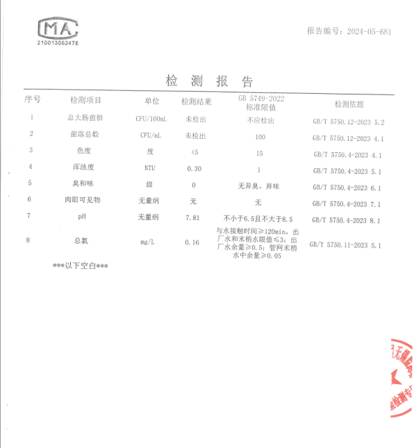 附件2:管網(wǎng)末梢水檢測(cè)報(bào)告(完整版)