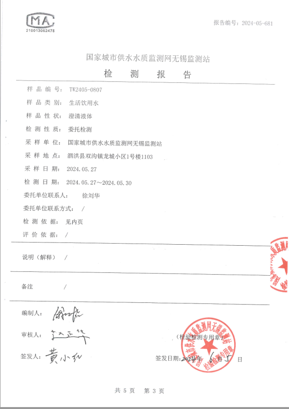 附件3:管網(wǎng)水檢測(cè)報(bào)告(完整版)