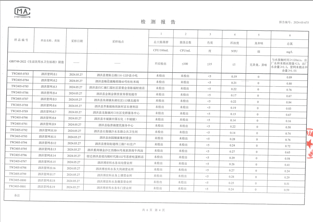 二、管網(wǎng)末梢水檢測(cè)報(bào)告(節(jié)選)
