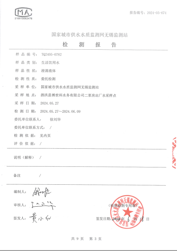 一、出廠水檢測(cè)報(bào)告(節(jié)選)