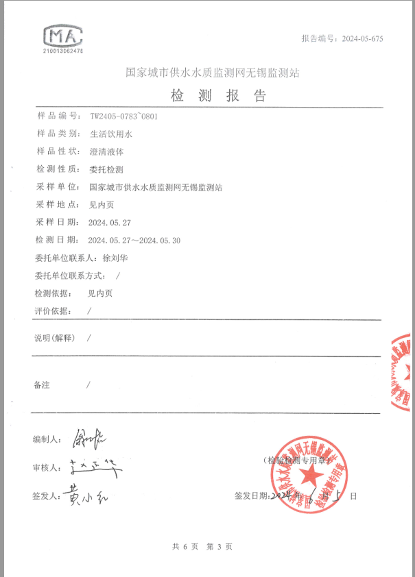 三、管網(wǎng)水檢測(cè)報(bào)告(節(jié)選)