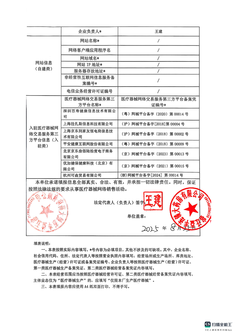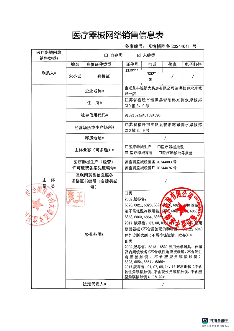 醫療器械網絡銷售公示(宿遷益豐大藥房連鎖有限公司泗洪佳和水岸城邦一店)