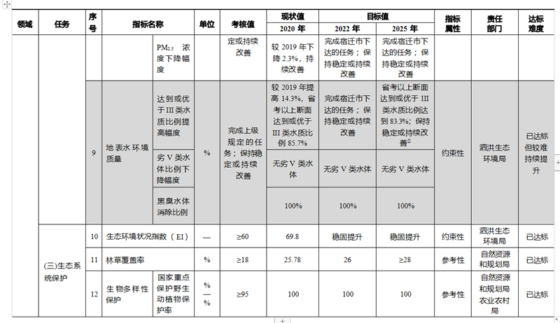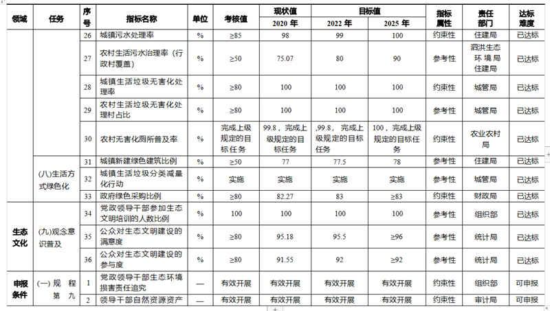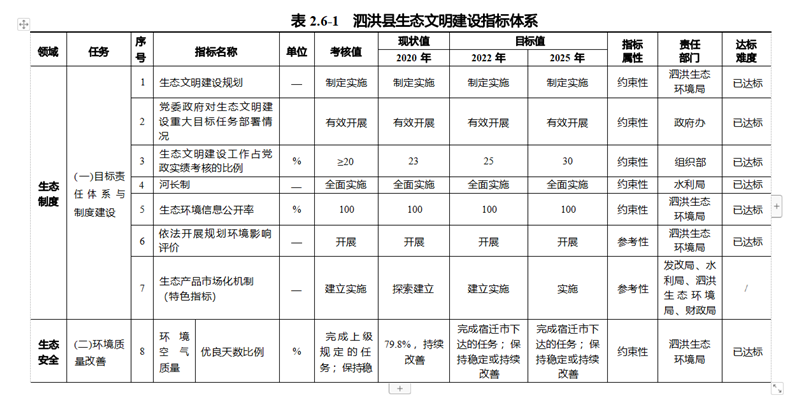 印發《泗洪縣生態文明建設目標評價考核辦法及評分細則(試行)》 ,落實生態文明建設工作考核 ,2020 年全縣生態文明建設工作占黨政領導考核的比例達到 23%。