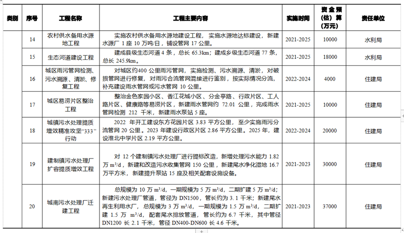 補齊城鄉污水處理短板 。統籌優化城鎮生活污水處理設施布局, 推進城鎮區域水污染物平衡核算 。適度超前建設城鎮污水處理設施, 新增或擴建污水處理能力。加強污水管網排查檢測,整治城區易澇片 區 ,有序推進管網改造、修復和新建 。全面排查農村污水治理情況, 推動農村生活污水處理設施規范化建設運行,持續開展農村生活污水 處理設施“ 回頭看” 行動 。建立農村生活污水治理日常環境監督機制,