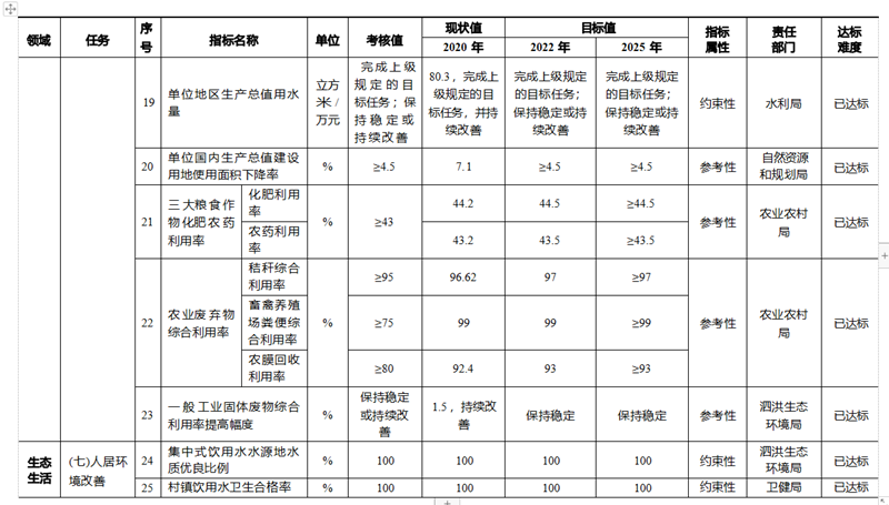 加強農村水環境治理,全面推行農村河道、道路交通、綠化美化、 環境保潔、公共設施“五位一體” 綜合管理模式。推動鄉村公共空間治 理,清理積存垃圾、河塘溝渠、農業廢棄物等。加強農村生活污水治 理,因地制宜選取污水處理與資源化利用模式,開展已建污水設施排 查評估,提高農村生活污水處理設施運維水平。積極推行農村生活垃 圾就地分類和資源化利用,實現規劃發展村莊生活垃圾分類處理全覆 蓋。推進農村廁所革命,探索建立符合農村實際的生活污水、垃圾處 理處置體系, 改廁與污水處理或利用設施同步實施 。到 2025 年 ,村 鎮生活垃圾集中收運率達到 100% ,農村無害化衛生戶廁普及率達到100%。