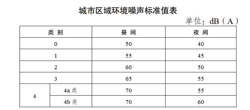 城市區(qū)域環(huán)境噪聲標(biāo)準(zhǔn)值表