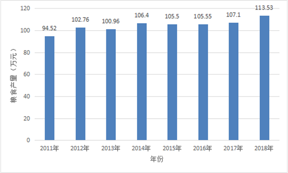 糧食生產保持穩定。全年糧食作物播種面積263.33萬畝,比上年增長4.90%,糧食生產實現穩定豐收。全年糧食總產113.53萬噸,其中夏糧總產47.34萬噸,比上年多2.59萬噸,秋糧66.19萬噸,比上年多3.84萬噸;糧食單產431.13公斤/畝,比上年多4.53公斤。