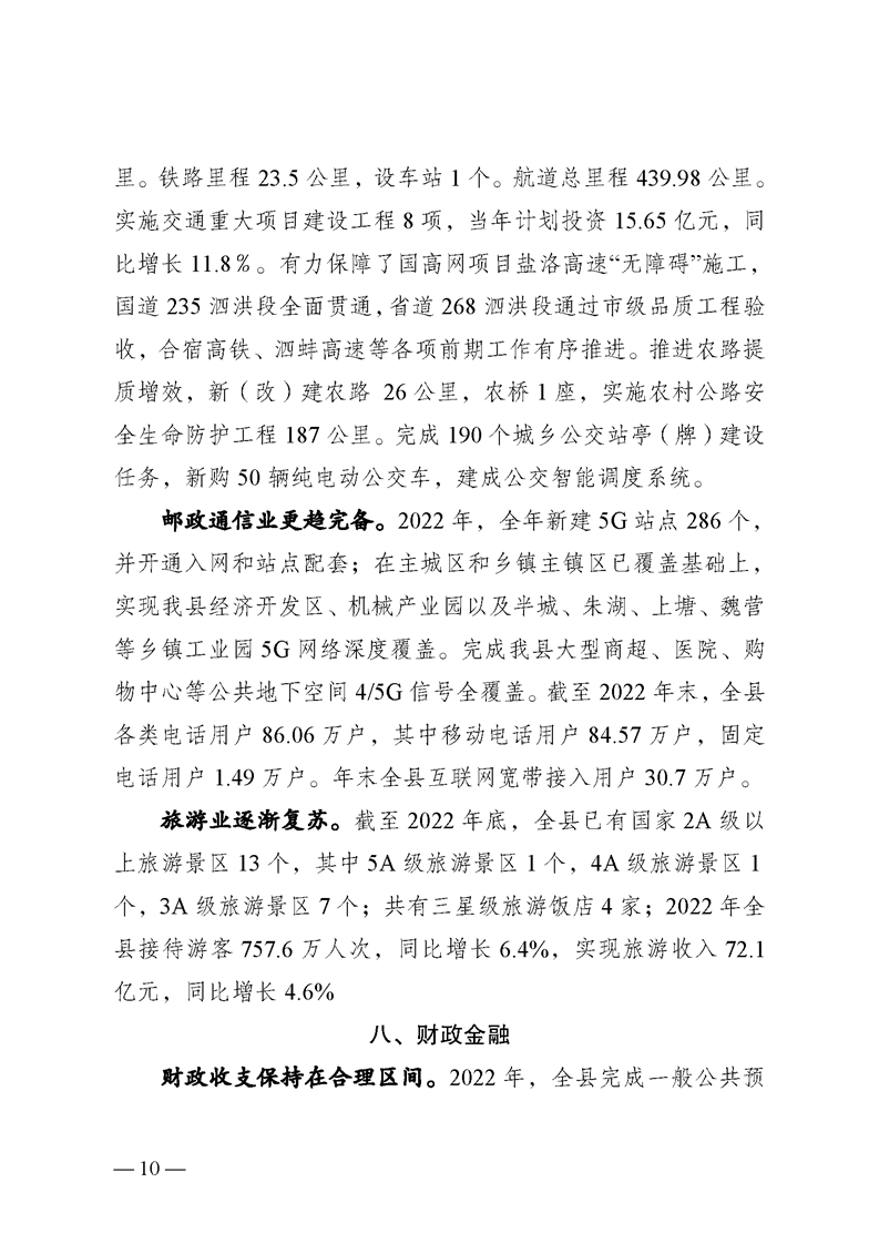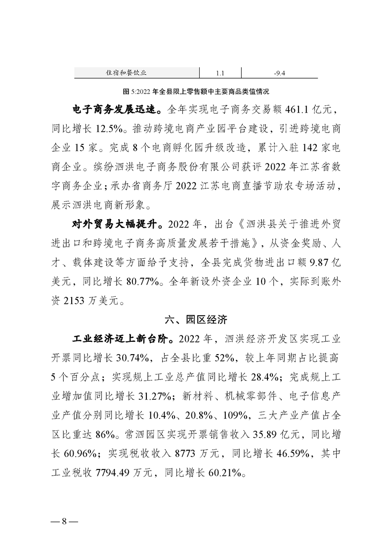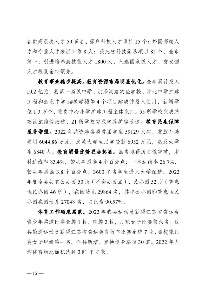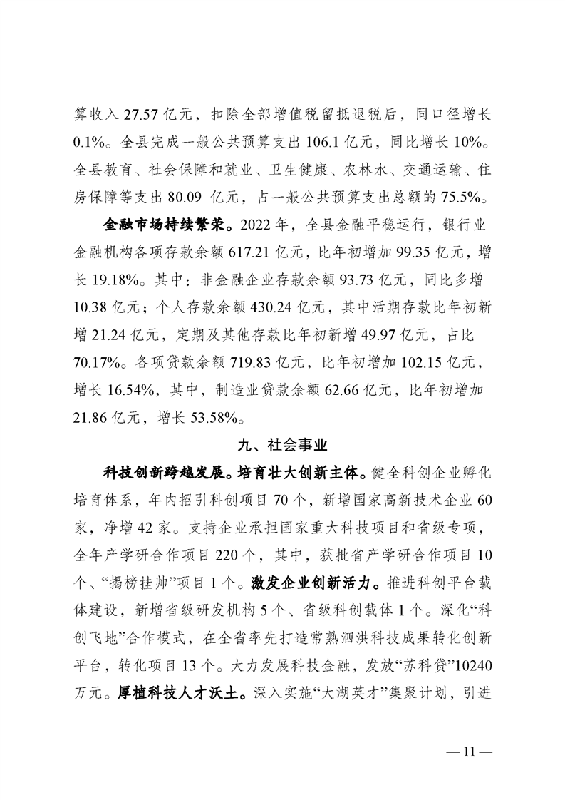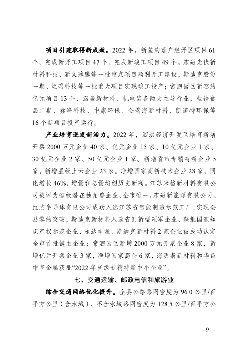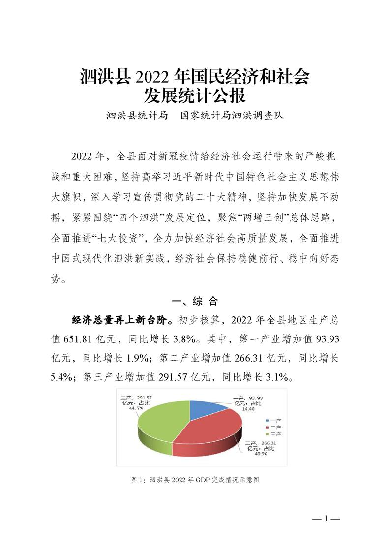泗洪縣2022年國民經(jīng)濟(jì)和社會(huì)發(fā)展統(tǒng)計(jì)公報(bào)