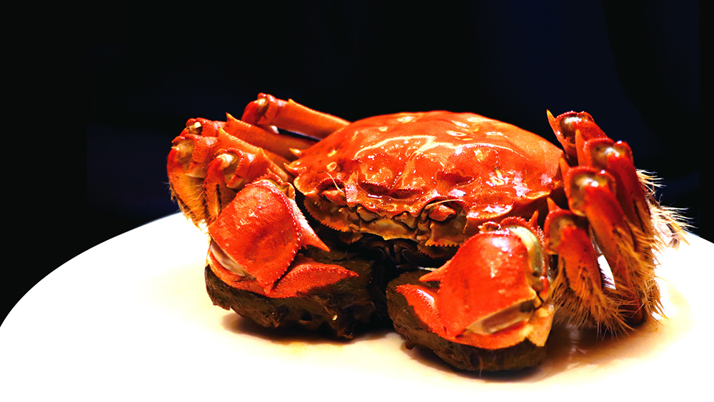 做法:取洪澤湖大閘蟹洗凈,捆好上蒸鍋蒸30分鐘即可。