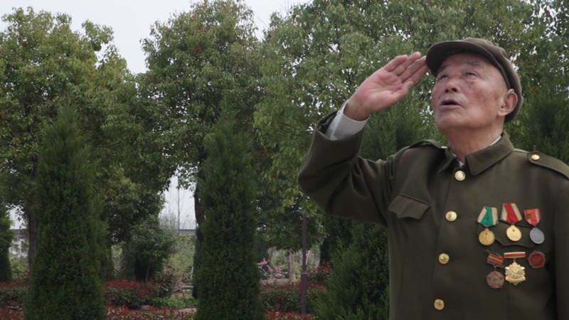 他叫金立珍,生于1929年。他曾參加過抗日戰爭、解放戰爭和抗美援朝,并于1948年1月光榮加入了中國共產黨。在他的童年,他因家中姊妹多土地少、常常餓肚子而于1942年參軍,那時的他是一個個子還沒有槍桿高的孩子,只能給首長當通訊員,直到他能拿得動槍后才真正走向戰場。他參戰不久,一場戰斗的場景就讓他懂得了戰爭的殘酷,也讓他懂得了感恩與珍惜。那是泗陽姚圩的一場戰斗,他所在的部隊被日軍追擊,緊急撤退。當時的他或許因為還小、或許因為沒有戰斗經驗,撤退時只顧往前跑,卻不想一顆炮彈在離他不遠的地方落下來,他還沒來得及反應,一個戰友就撲過來把他推倒,趴在他身上。結果,他的戰友犧牲了,而他卻活了下來。那個場景讓他刻骨銘心,讓他對戰斗中犧牲的烈士懷有一顆崇敬之心。在戰友們的幫助下,他在戰火中掩埋了救他的戰友;在墓前,他在自己心中對救他的戰友許下諾言:他要勇敢戰斗,繼承救他的戰友未盡事業;他要讓救他的戰友得到安息,要讓所有犧牲在戰場上的烈士得到安息!