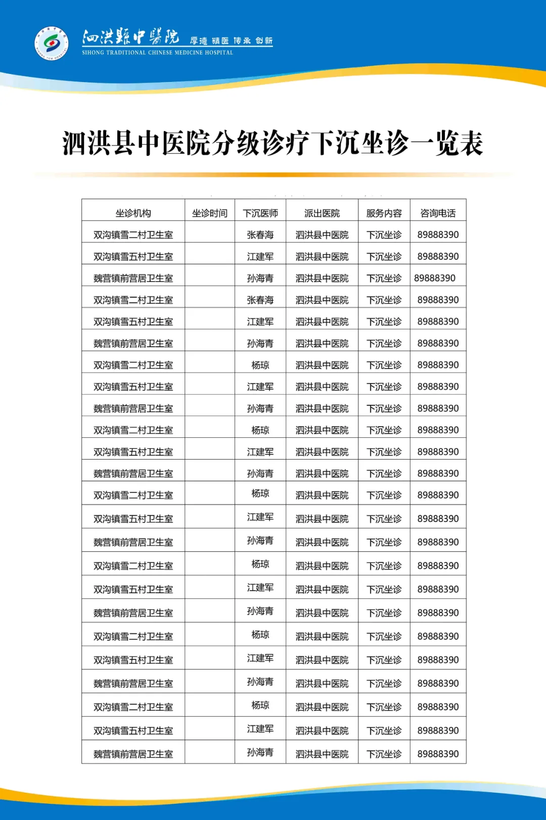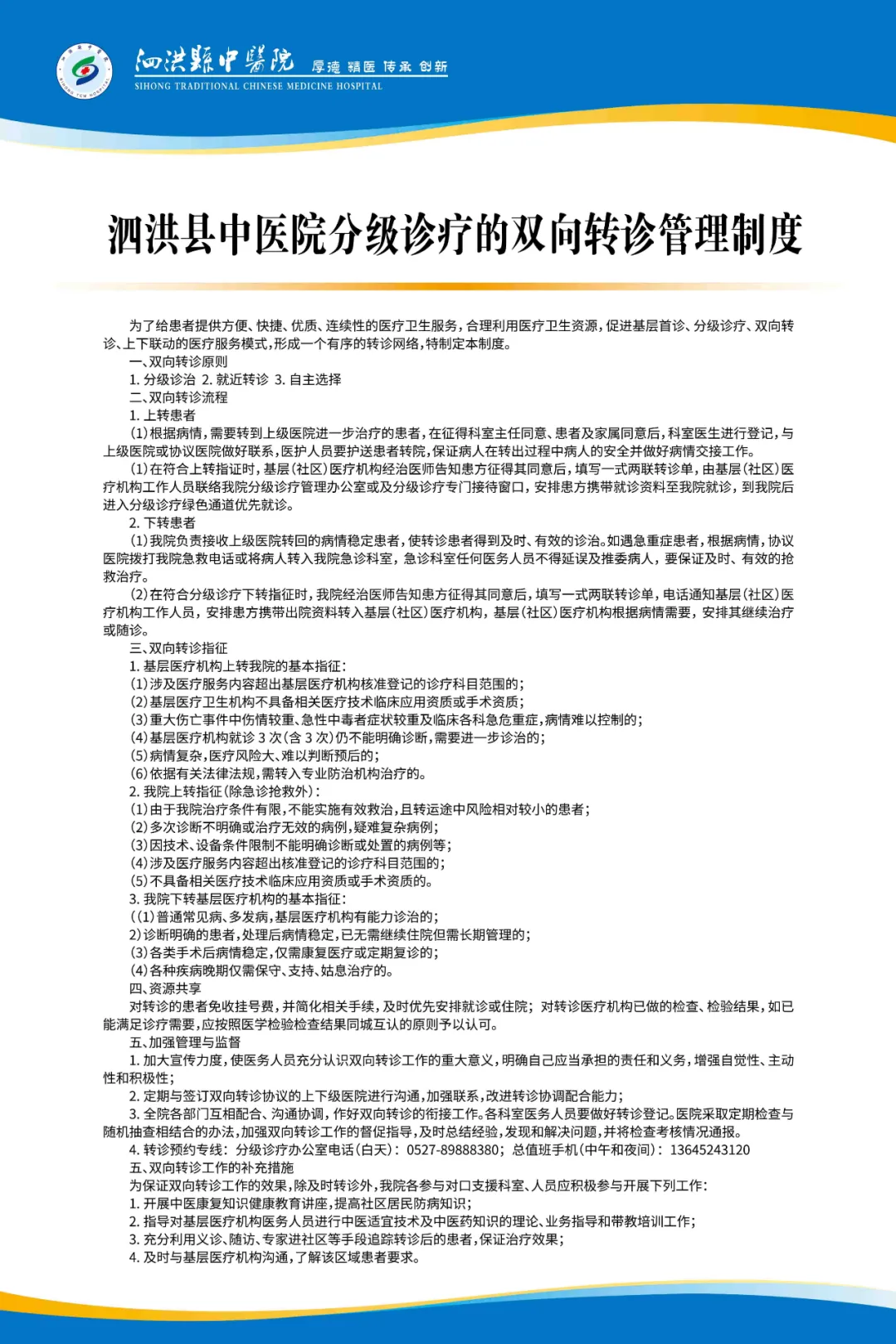 泗洪縣中醫院分級診療制度、流程圖及坐診表