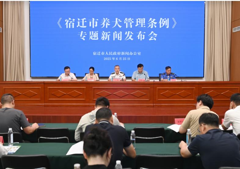 發布會共有5項議程:一是發布《宿遷市養犬管理條例》主要內容;二是介紹《宿遷市養犬管理條例》立法背景和處罰措施設置相關內容;三是介紹犬只免疫和接種方面內容;四是介紹文明養犬維護市容市貌和環境衛生的有關規定;最后回答大家關心的問題。