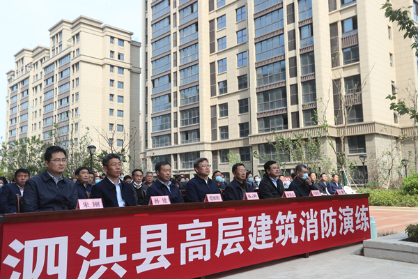 會前,與會人員集中觀摩了水韻桃源花園住宅小區消防通道治理示范項目建設,并觀看了高層住宅消防救援實戰演練。